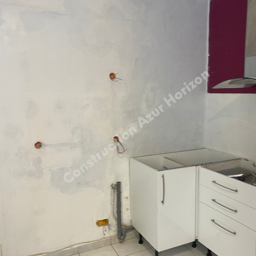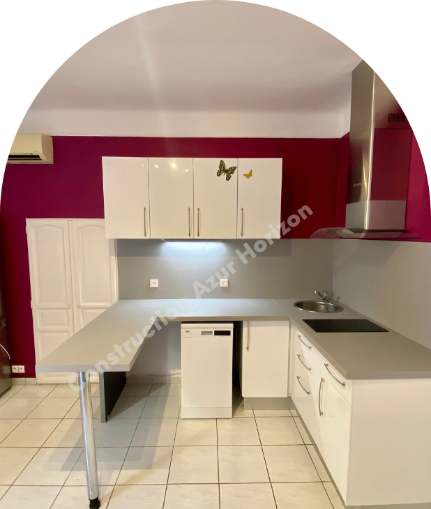 Pour ce projet, Construction Azur Horizon a été sollicité pour rénover entièrement une cuisine endommagée par le temps et l’humidité.