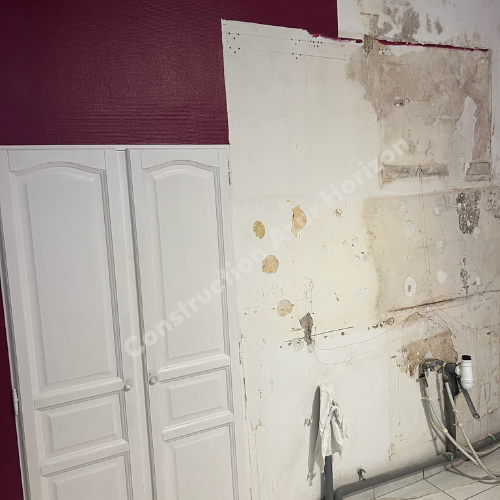 Analyse des dégâts, diagnostic des problèmes d’humidité, démontage et nettoyage complet de l’espace.
